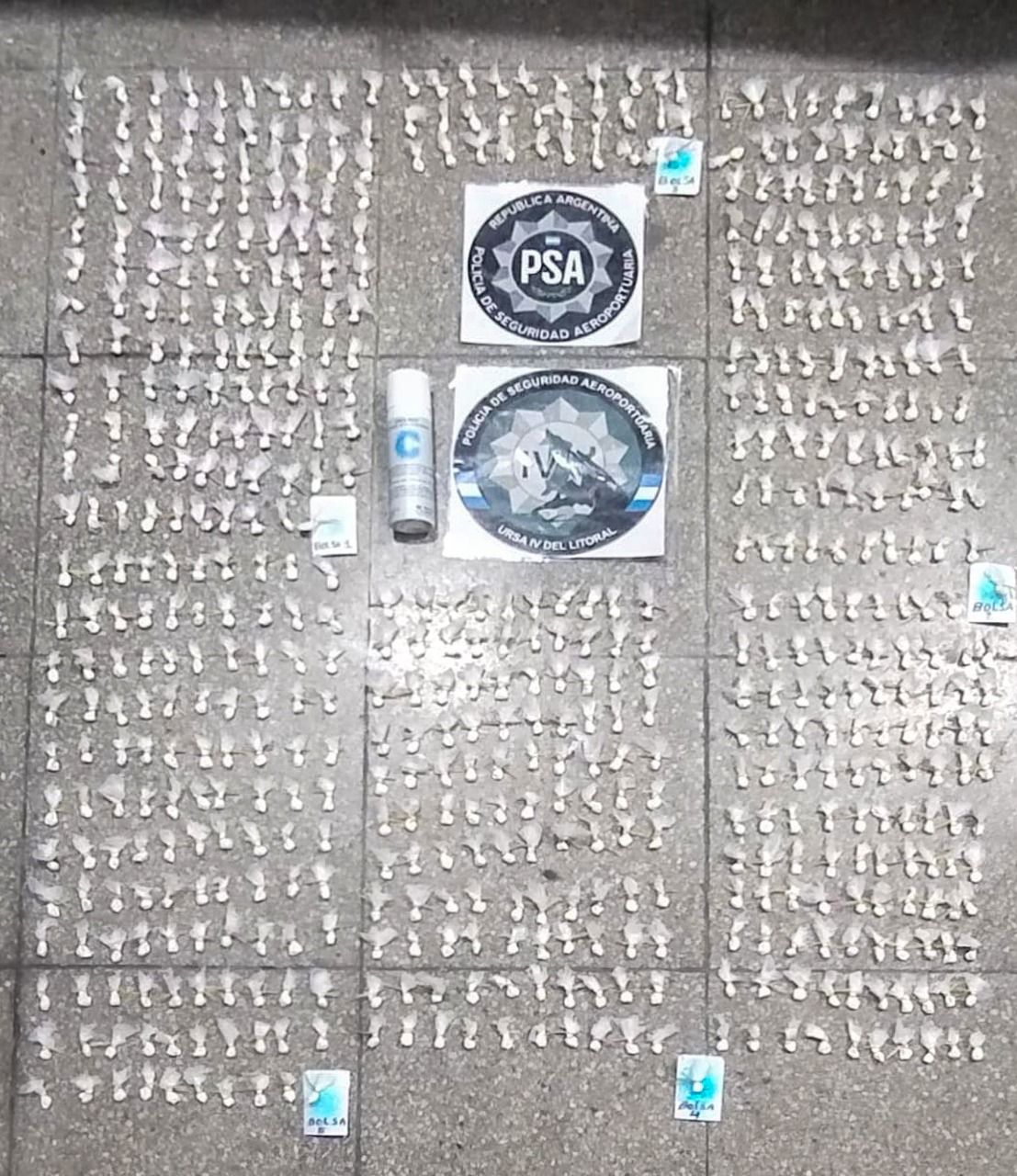 Al revisar la mochila que llevaba, los miembros de PSA comprobaron que tenía en su interior bolsas con pequeños envoltorios de una sustancia pulverulenta blanquecina, a la que se le realizó reactivo de campo y este arrojó como resultado positivo para clorhidrato de cocaína. En total se secuestraron 600 dosis de la droga, más 19.000 pesos, un teléfono celular y la bicicleta.