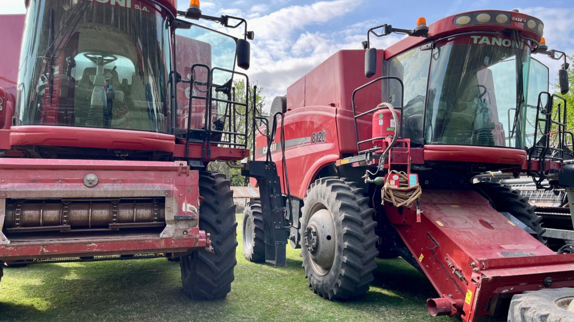Posteriormente, en la zona rural del distrito Chovet, secuestraron un tanque de combustible de color rojo marca Belén (capacidad 4000 lt.) con 3000 lt. aproximadamente de combustible, con baulera y tanque de agua, un taller rodante color rojo marca Ombú, de 5 metros de largo por 2,10 de ancho con puertas laterales, con gran cantidad de herramientas y repuestos, una casilla Marca el Sol de 7,50 metros equipada con aire acondicionado, televisor, termo tanque, dos garrafas de 15 kg, cocina y 5 camas con sus respectivos colchones; una cosechadora marca Case de color rojo, Modelo N° 8120 LAA4WD, motor marca FPT165487, chasis marca Case modelo AÑO 2012, una cosechadora marca Case de color roja modelo N° 8120 LAA modelo 2012, dos plataforma marca Macdon de 40 pies de lona con sus respectivos carros porta plataforma y una camioneta pickup Toyota Hilux.