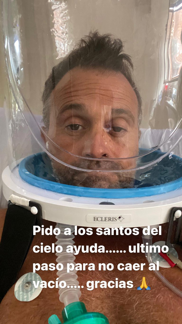 En las últimas horas, los médicos tomaron la decisión de colocarle un casco que mejora la oxigenación del paciente y reduce más del 30 % la necesidad de entubamiento que reemplaza el uso del respirador mecánico, denominado Helmet. Además, evita potenciales contagios al personal médico y sanitario. Fue el propio periodista quien se volvió a mostrar activo en sus redes sociales. Lo hizo a través de una selfie que se tomó con el elemento puesto y la compartió en su cuenta de Instagram con un conmovedor mensaje.