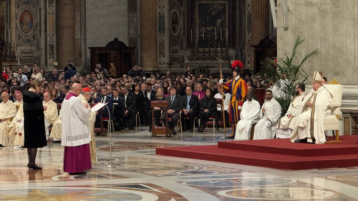 Miles de personas se congregaron en la Basílica de San Pedro para la celebración eucarística de casi dos horas de duración presidida por el pontífice y en la que estuvo, entre otras autoridades, el presidente Javier Milei, que fue buscado por muchos fieles para sacarse fotos.
