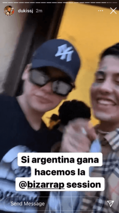 Desde España, los jóvenes publicaron una imagen en la cuenta de Instagram del trapero.” Cabrón, si Argentina gana la Copa América hacemos la Bizarrap Session con Biza. Corta. Corta”, escribieron.