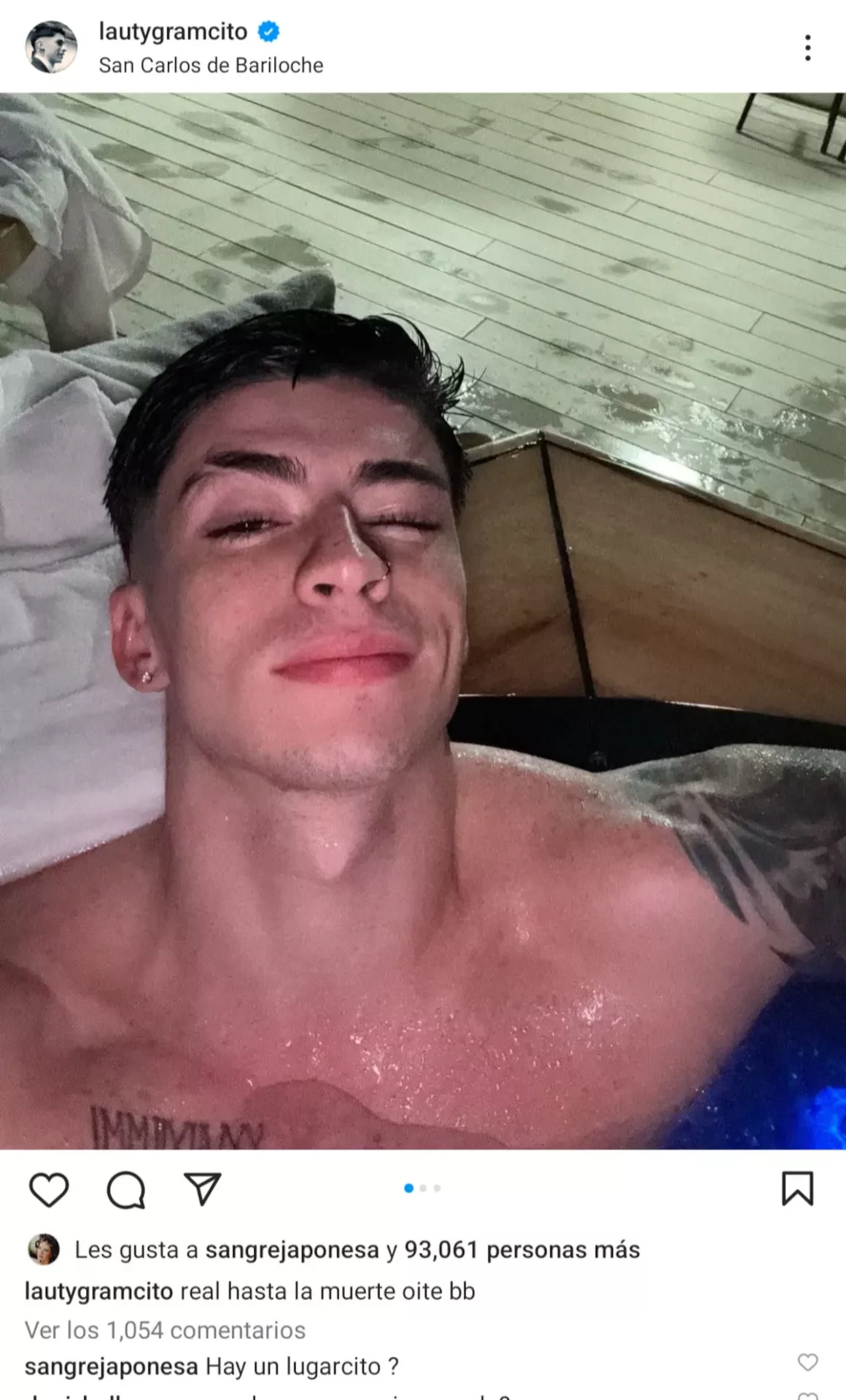 La China Suárez dejó un comentario ardiente en una foto que, de su pareja, el cantante Lauty Gram, subió a su feed en Instagram, en la cual se lo ve disfrutando de un momento de relax en un jacuzzi.
