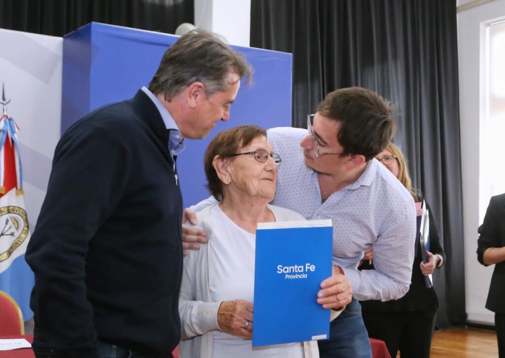 El Ministerio de Desarrollo Social, a través de la Coordinación Ejecutora Provincial para la Regularización Dominial, entregó actas de reconocimiento de derecho posesorio y escrituras de regularización dominial a 110 familias del departamento Rosario.
