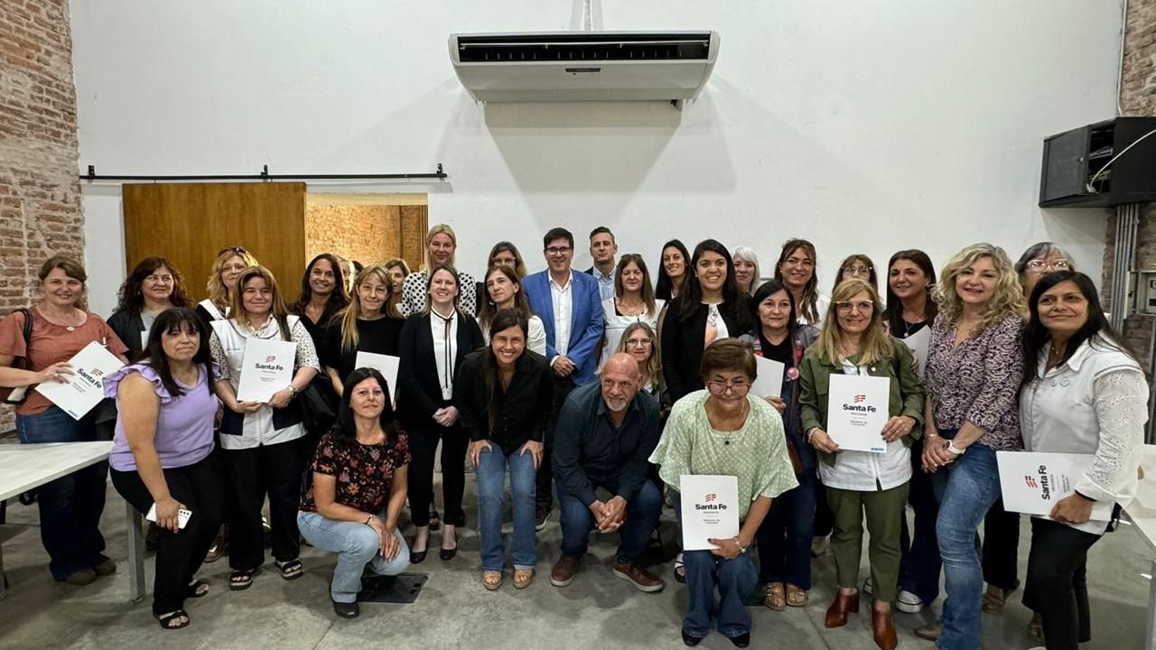 El ministro de Educación José Goity, junto a las secretarias de Coordinación y Gestión de Recursos, María Martín, y de Gestión Territorial Educativa, Daiana Gallo Ambrosis, se reunieron con los equipos directivos de 19 instituciones educativas de la ciudad de Rosario a las que le hicieron entrega de aportes económicos.