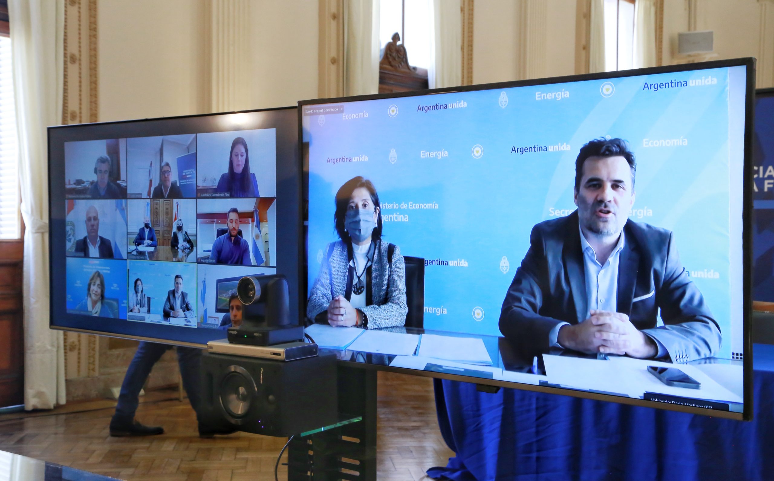 El encuentro, desarrollado de manera virtual, también contó con la presencia de la ministra de Infraestructura, Servicios públicos y Hábitat, Silvina Frana; el secretario de Empresas y Servicios Públicos, Carlos Maina; el presidente de Enerfe, Juan D’Angelosante; la secretaria de Gestión Federal, Candelaria González del Pino; la subsecretaria de Hidrocarburos de la Nación, Maggie Videla; y el presidente de IEASA, Agustín Jerez, entre otros.