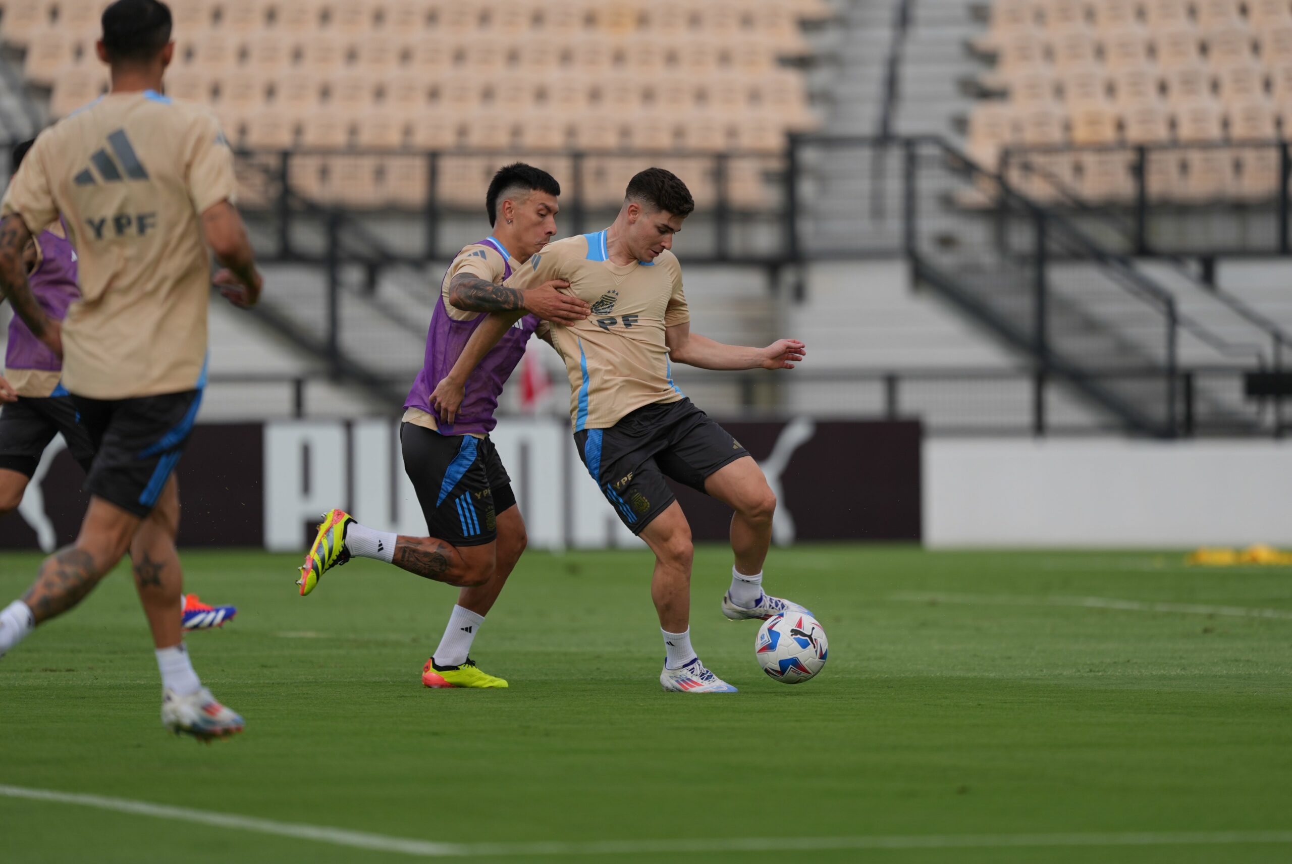 El plantel dirigido por Lionel Scaloni realizó noventa minutos de ejercicios en el campo de juego de la Universidad del Estado de Kennesaw. Una entrada en calor con pelota y ensayos de salida y definición, con defensa en presión e inferioridad numérica, con indicaciones del entrenador desde el mediocampo.