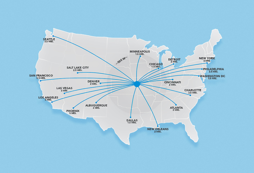 Ubicada en el medio oeste de Estados Unidos, cerca del centro geográfico del país, Kansas City ofrece una posición logística favorable para los traslados internos. Además, fue valorada por ser una ciudad menos congestionada que otras opciones, con menos complicaciones de tránsito y temperaturas más moderadas que otras sedes posibles.