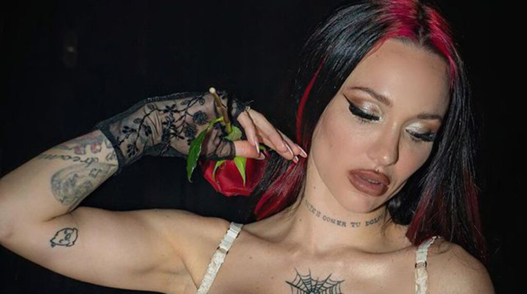 La Joaqui volvió a generar polémica en las redes sociales. En esta ocasión, compartió una foto donde aparece recostada boca arriba, luciendo ropa interior de color rojo, revelando sus tatuajes más íntimos y atrevidos en todo su cuerpo. Junto a la publicación, escribió: “Y como te amo volví a caer”. El posteo obtuvo más de 650 mil “likes”.
