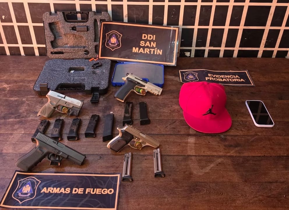 Durante el procedimiento, los efectivos secuestraron un importante arsenal que estaba oculto en la habitación donde dormía: una pistola Glock calibre .40 con 15 municiones, una Bersa calibre .22 con cargadores, otra Bersa TPR9 de 9 milímetros, y una Taurus G3C también de 9 mm, todas con sus respectivos cargadores.