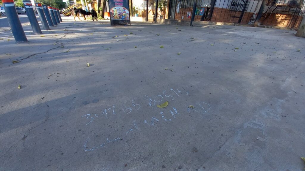 Tras los disparos, quedó en la vereda del almacén un número de teléfono dibujado con tiza junto a una leyenda: “LLAMEN XD”, el emoji que significa la “risa”.