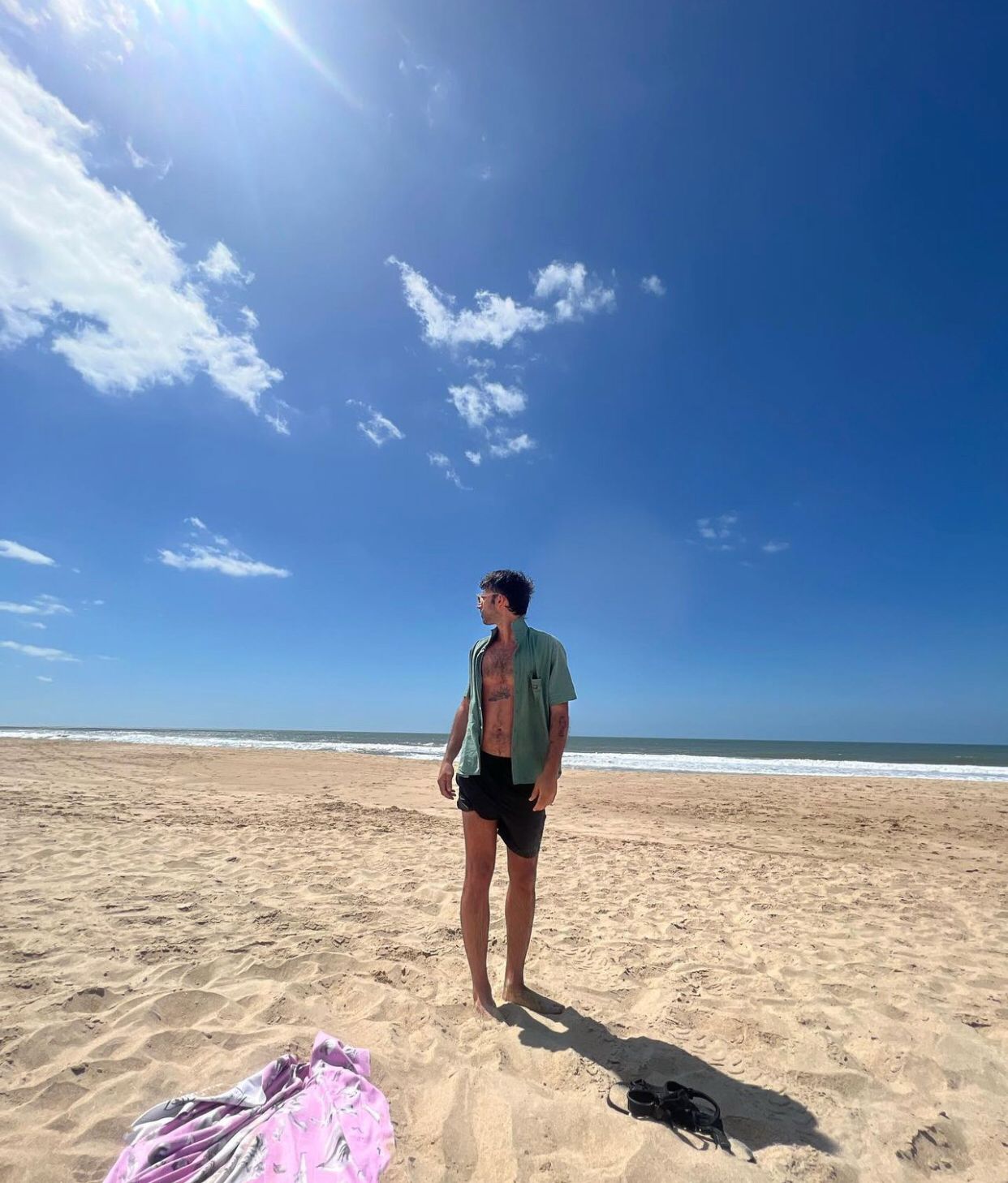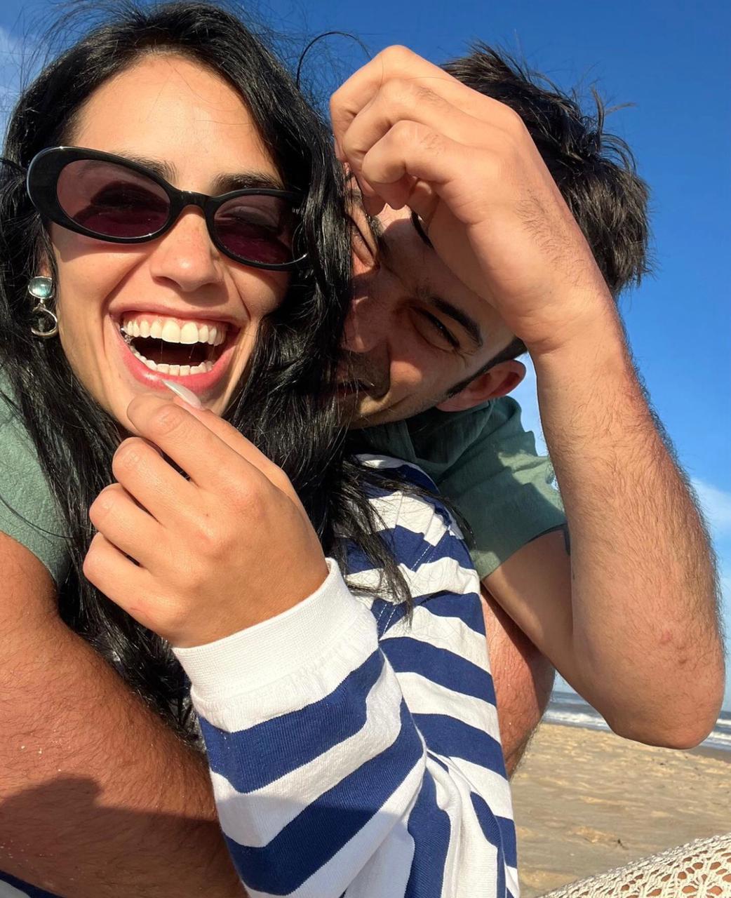 Bajo un cielo celeste, y con un intenso sol, la pareja se mostró muy feliz. Entre besos, abrazos y risas ambos comparten un momento de tranquilidad durante el verano.