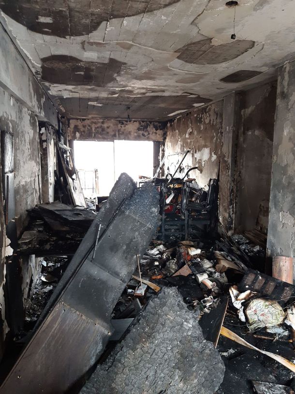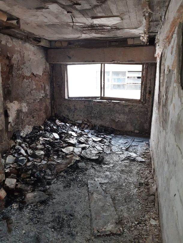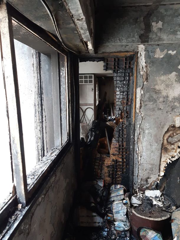 El departamento del séptimo piso donde se produjo un incendio con seis víctimas fatales. La casa quedó arrasada por el fuego en los pocos minutos que tardaron en llegar los bomberos al edificio que se ubica en Ecuador al 1000 en el barrio porteño de Recoleta.
