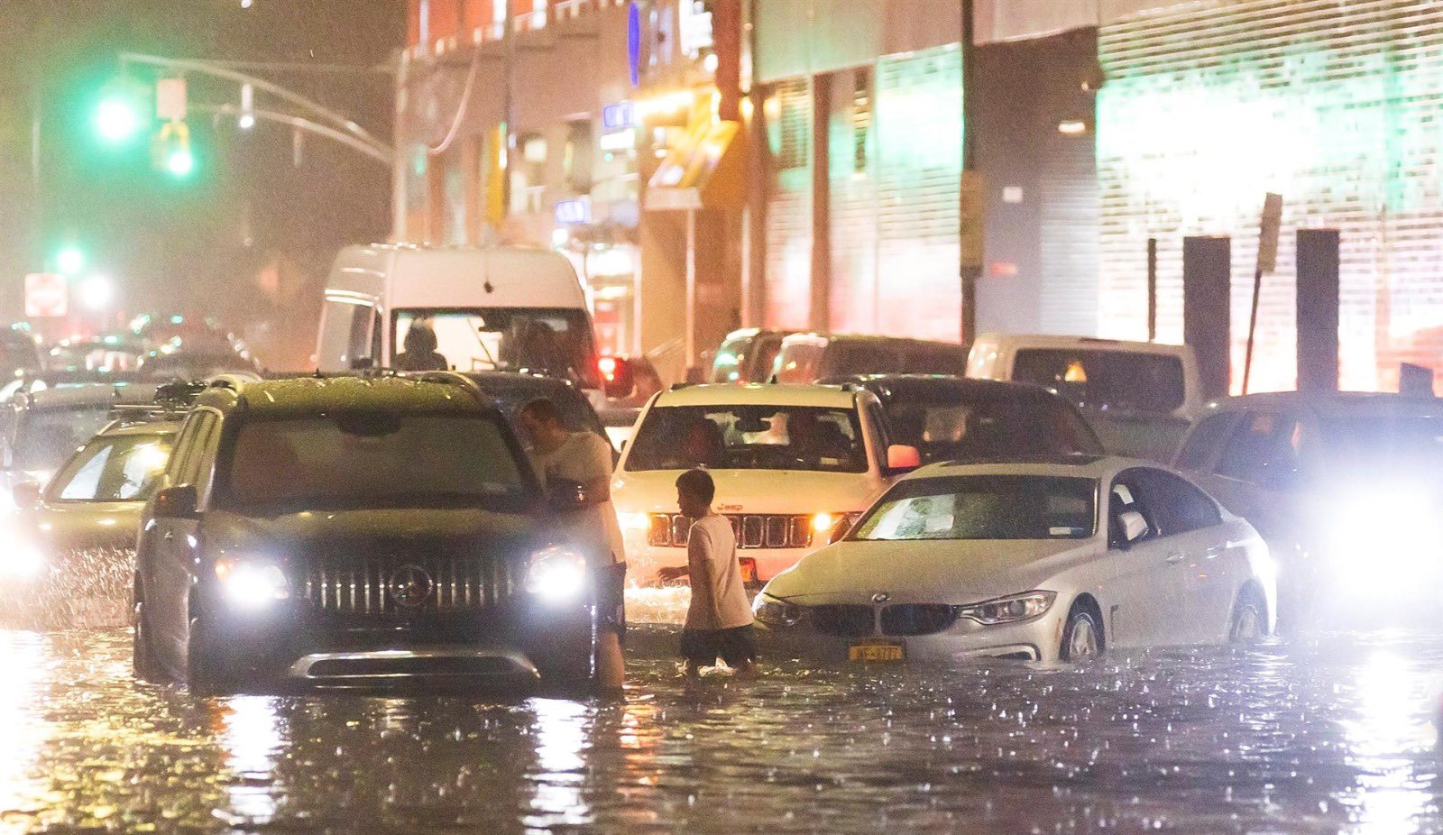 “Estamos sufriendo un evento meteorológico histórico con lluvias que están rompiendo récords por toda la ciudad, con inundaciones brutales y condiciones peligrosas en las carreteras”, advirtió el alcalde de Nueva York, Bill de Blasio, en las redes sociales.