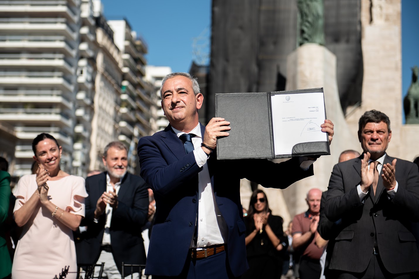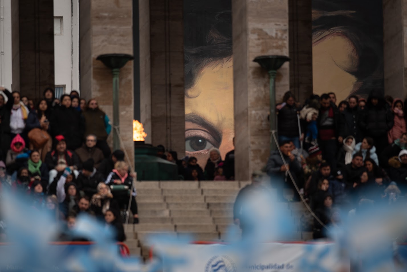 El ojo de Manuel Belgrano mirando al Monumento a la Bandera durante una celebración rosarina. La mirada del fotógrafo de Boing y otra postal de 2025 (Foto: Farid Dumat Kelzi)