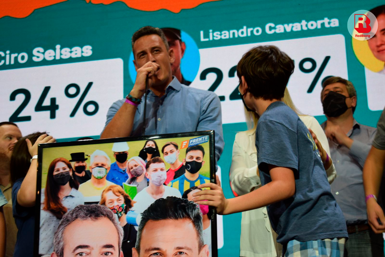 Desde su búnker el candidato a concejal de Rosario por el Frente Progresista Cívico y Social, Ciro Seisas, habló junto al Intendente Pablo Javkin, expresándose como ganador en esta elección, tras el 83% de las mesas escrutadas.