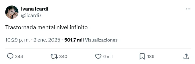 Las repercusiones de las declaraciones de Wanda fueron los protagonistas de la noche del jueves y la hermana de Icardi, Ivana, no se quedó callada ante lo que se dijo del futbolista. “Trastornada mental nivel infinito”, fue lo que escribió la influencer en sus redes sociales.