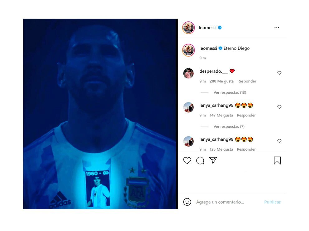 Uno de los posteos más esperados fue el de Lionel Messi, quien publicó un breve pero sentido mensaje acompañado de una conmovedora imagen. “Eterno Diego”, escribió el delantero del París Saint-Germain, y adjuntó una foto en la que viste una camiseta especial de la Selección argentina.
