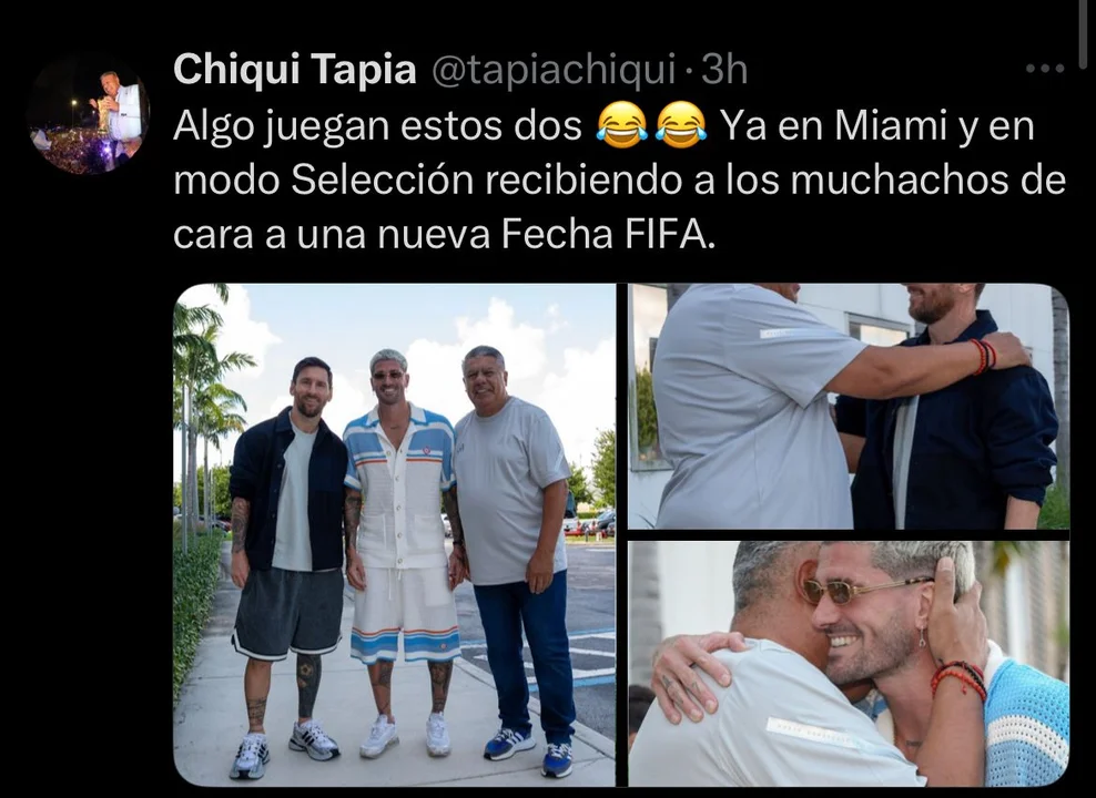 “Algo juegan estos dos. Ya en Miami y en modo Selección recibiendo a los muchachos de cara a una nueva Fecha FIFA”, expresó el sanjuanino.
