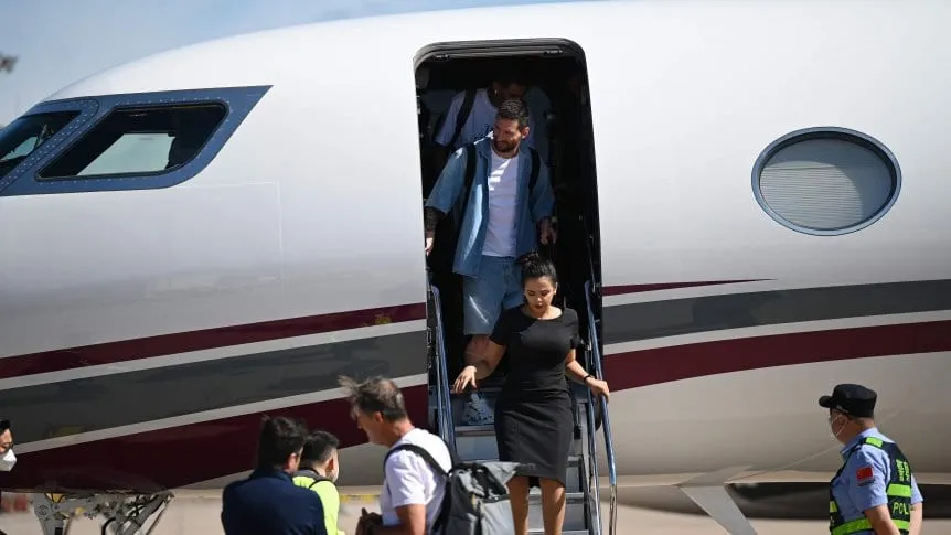Lionel Messi llegó a China durante la mañana de este sábado, en un avión privado junto a otros integrantes de la Scaloneta, con destino a Beijing. El arribo del astro argentino generó gran expectativa entre cientos de fanáticos que aguardaban su llegada en el aeropuerto.