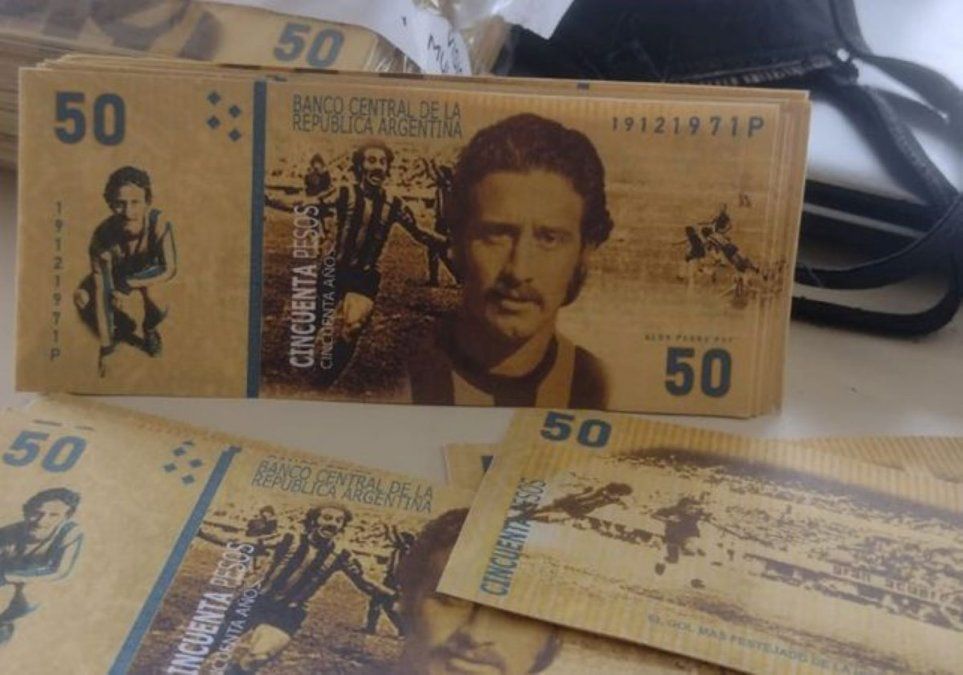 El ex diputado nacional contó que el billete fue “creado por la diseñadora gráfica Adriana Gomez, y fue armado con fotos históricas de la palomita y de Aldo en su época de futbolista”.