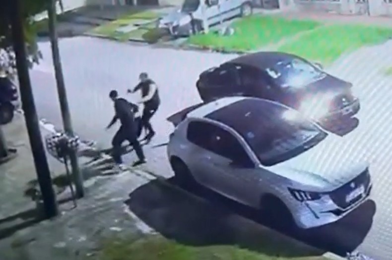 Las imágenes muestran la secuencia completa: los delincuentes interceptan al joven, lo reducen y, tras el robo, uno de ellos efectúa un disparo que impacta en el abdomen de la víctima. Luego, los agresores se dieron a la fuga.