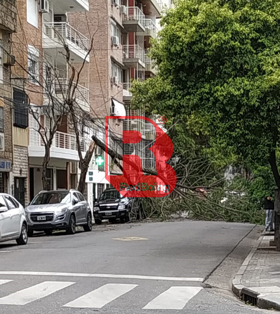 Además, el temporal provocó la caída de árboles imposibilitando la circulación en las calles. Junto a esto, muchas ramas cayeron sobre autos provocando graves destrozos.