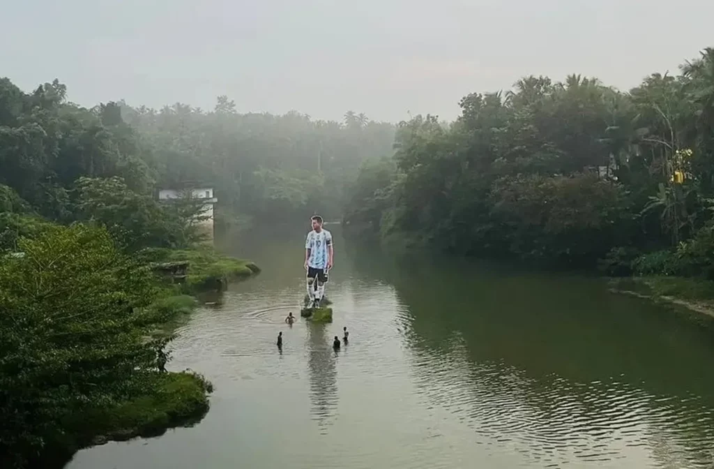 El astro futbolístico, Lionel Messi, despierta sentimientos en todo el mundo. En Pullavoor, un pequeño pueblo de la India, homenajearon al rosarino con una gigantografía suya en medio del río.