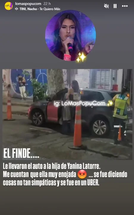 “El finde le llevaron el auto a la hija de Yanina Latorre. Me cuentan que ella, muy enojada, se fue diciendo cosas no tan simpáticas”, indicaban las imágenes que se filtraron en una cuenta de Instagram.