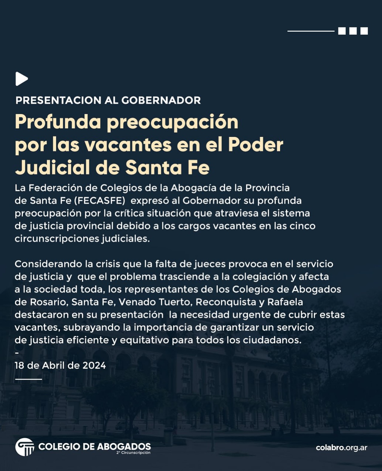 Desde el Colegio de Abogados manifestaron su preocupación por la situación que atraviesa el sistema de justicia provincial en razón de los cargos vacantes existentes en las cinco circunscripciones judiciales de la provincia.