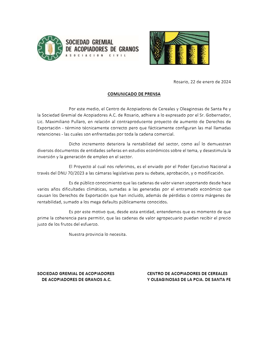 Comunicado de Acopiadores de Granos