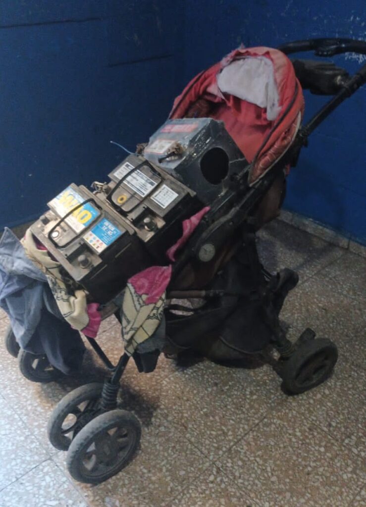 A pocas cuadras, en Machain y Rivera, los agentes vieron caminando a una persona con similares características a la que los vecinos habían visto robar. Eran dos, un hombre y una mujer. Y ella llevaba un coche de bebé de color negro y rojo. Tras notar la presencia de los policías, arrojaron varios elementos al costado de las vías y se dieron a la fuga.