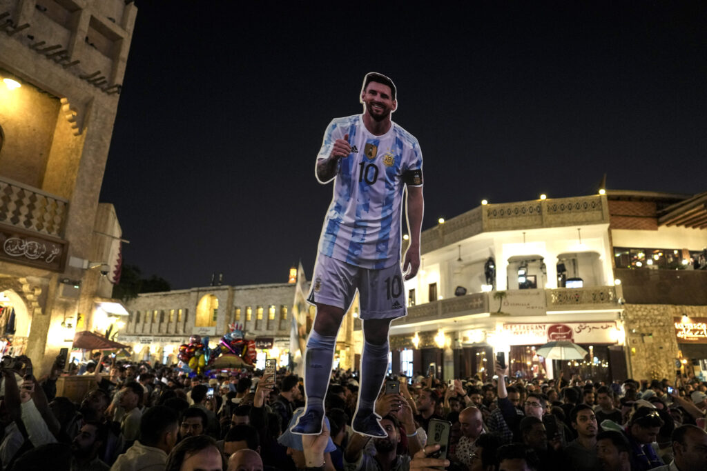 Como en la antesala de los seis partidos que disputó la Selección Argentina en la Copa del Mundo de Qatar, los hinchas se reunieron en “Le Pouce”, la escultura con la forma de un pulgar gigante dorado ubicada en Souq Waqif.