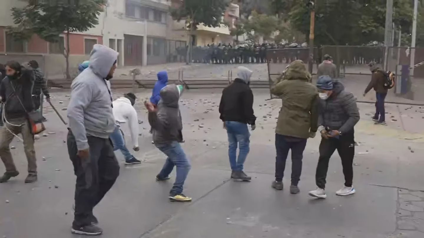 El mandatario hace referencia al avance de los manifestantes que intentaron ingresar a la Legislatura de la Provincia donde, en su interior, se tomaba juramento de la reformada Constitución jujeña. Afuera, la policía reprimía con balas de goma y gases lacrimógenos.