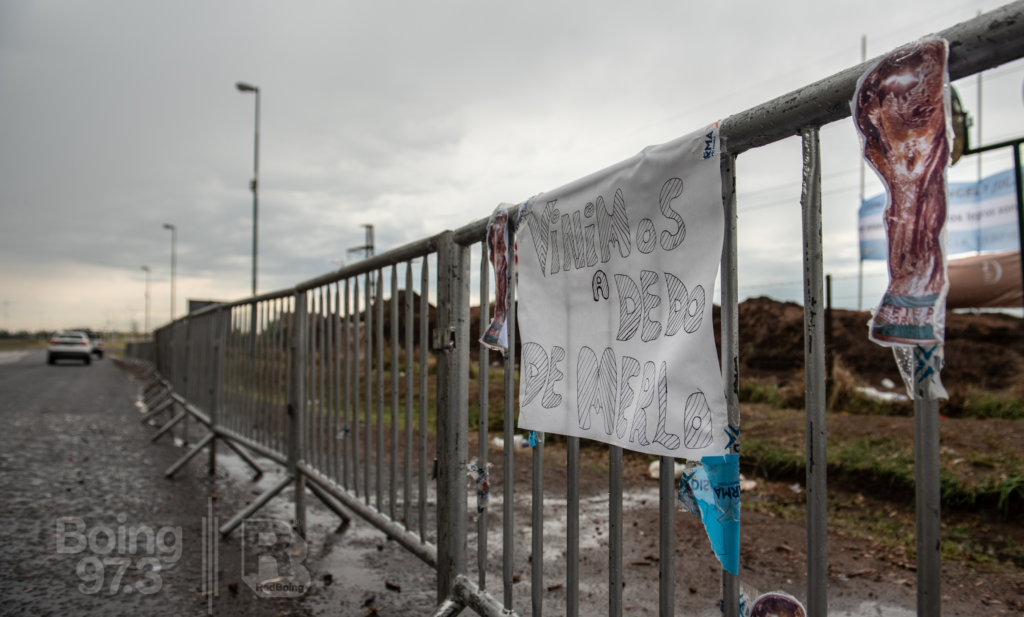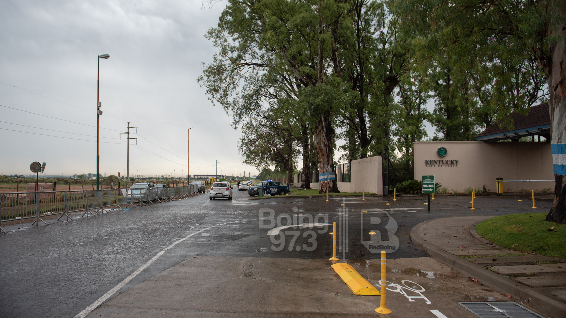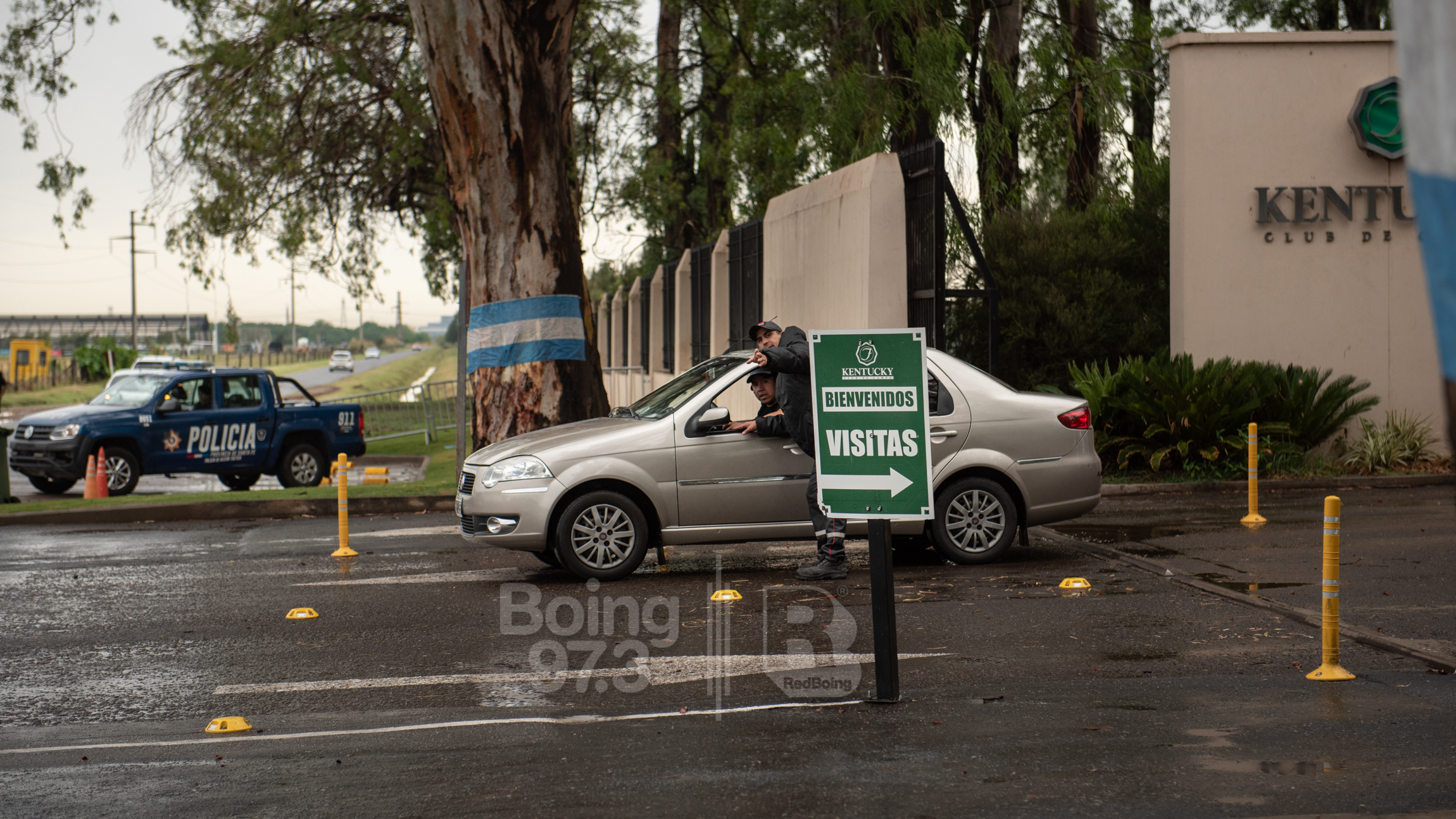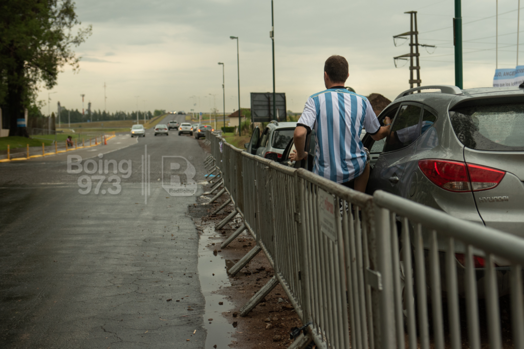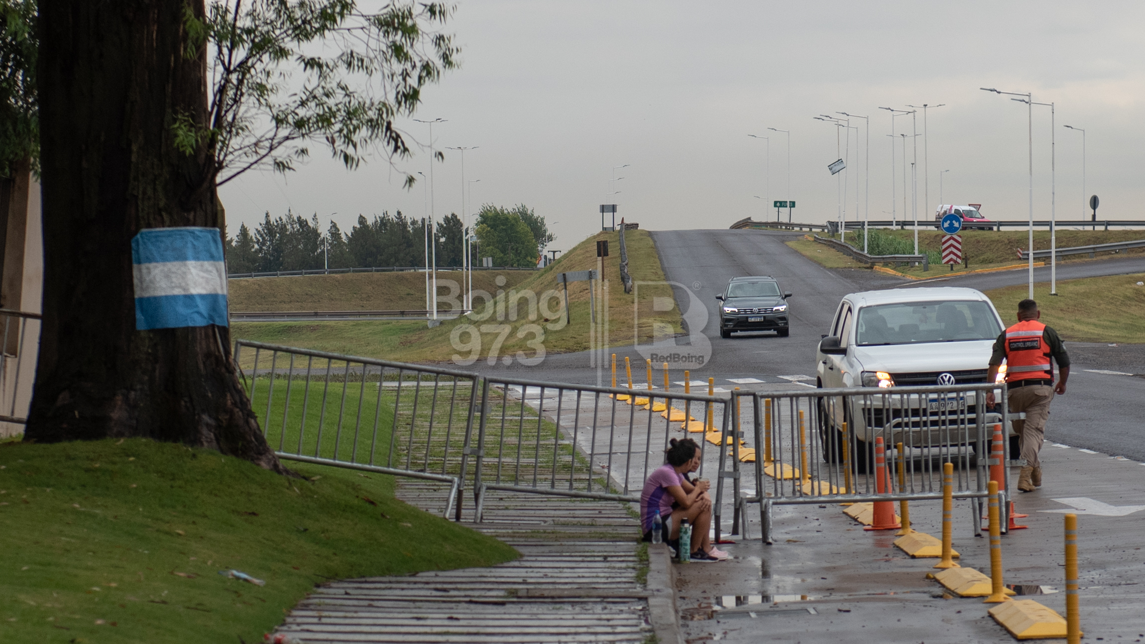 Si bien se registró menos gente que en los días anteriores, en autos, camionetas o simplemente abajo de la lluvia, los hinchas argentinos siguen con la custodia en la puerta del Kentucky.