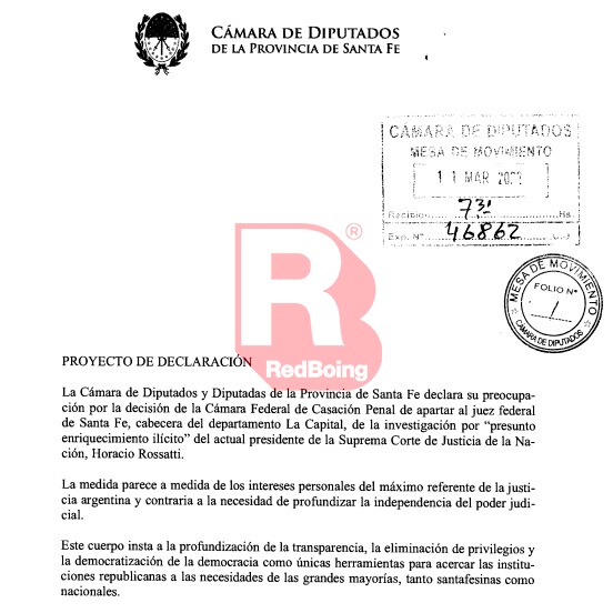 Pero Rosatti insistió con su pedido de no ser investigado judicialmente, hasta que en marzo de este año logró la decisión de la Sala 1 de la Cámara de Casación Penal, que sacó al juez Rodríguez de la causa. Por este tema, el diputado provincial Carlos Del Frade presentó en esos días un Proyecto de Declaración en la Legislatura provincial.