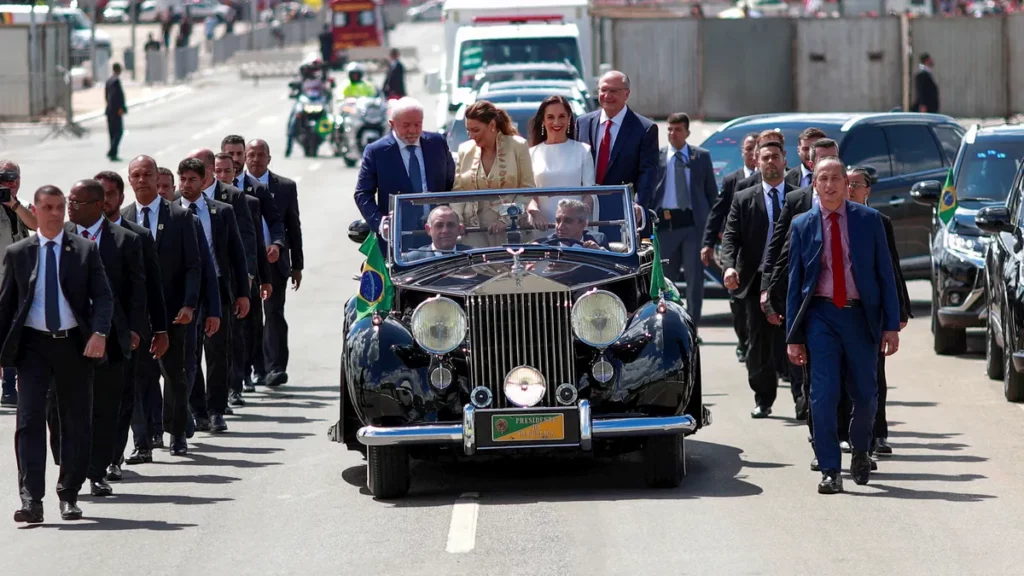 Lula da Silva inició pasadas las 14.30 la ceremonia de asunción del mando como presidente de Brasi por tercera vez, al iniciar en el Rolls Royce descapotable de la Presidencia de la República un desfile desde la Catedral Metropolitana hasta el Congreso en la Explanada de los Ministerios en la capital Brasilia, ante una multitud. Unos 20 minutos después el ex sindicalista entró al Congreso para seguir con el protocolo.