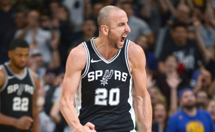 Ginóbili, quien llegó a los San Antonio Spurs procedente del Kinder Bolonia de Italia (2002), ganó cuatro títulos en la NBA: 2003, 2005, 2007 y 2014. Su camiseta número 20, la que siempre utilizó mientras duró su romance con la franquicia texana, fue retirada en el AT&T Center de San Antonio en marzo de 2019.