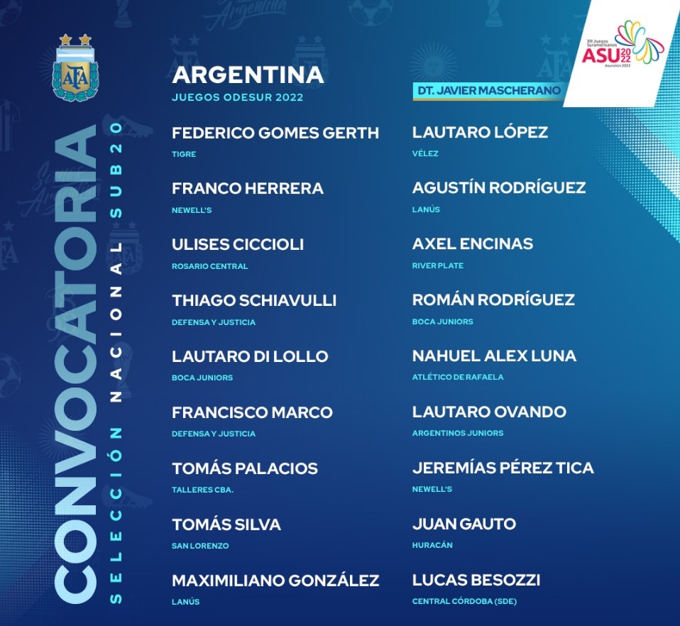 Finalmente, Facundo Buonanotte, Brian Aguirre y Gino Infantino no serán convocados por el entrenador. Aún así, hay presencia rosarina. Franco Herrera y Jeremías Pérez Tica de la Lepra mientras que Ulises Ciccioli fue llamado por parte del Canalla.