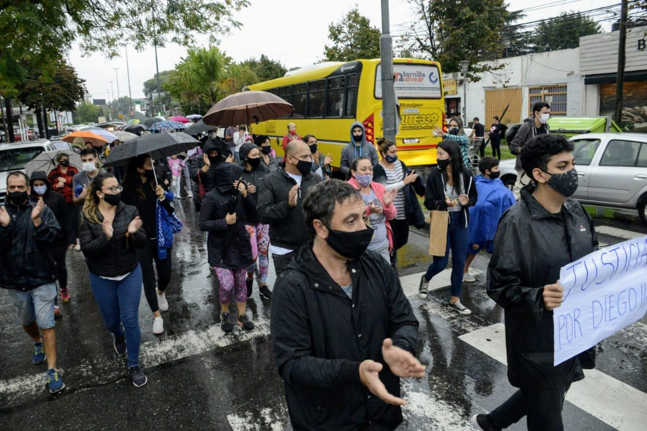 Pese a la intensa lluvia que cayó sin descanso en nuestra ciudad, una multitud se aglomeró en Fisherton. La marcha fue convocada en las intersecciones de Wilde y Córdoba, y desde ahí comenzó la manifestación en favor del joven detenido. Más de sesenta personas pidieron por la liberación inmediata de Diego, a los que se le sumó una caravana en autos que realizaron la procesión con ellos.