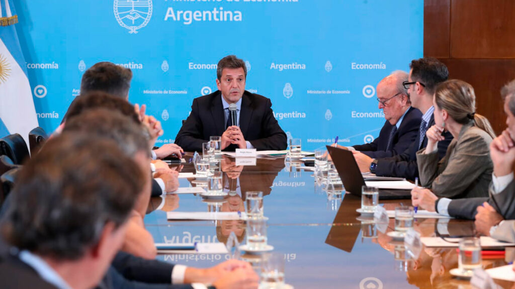 El ministro de Economía, Sergio Massa, se reunió con banqueros para explicarles detalles de su decisión de obligar a todos los organismos públicos nacionales a canjear sus tenencias de bonos en dólares bajo legislación extranjera por títulos públicos en pesos que emitirá el Tesoro.