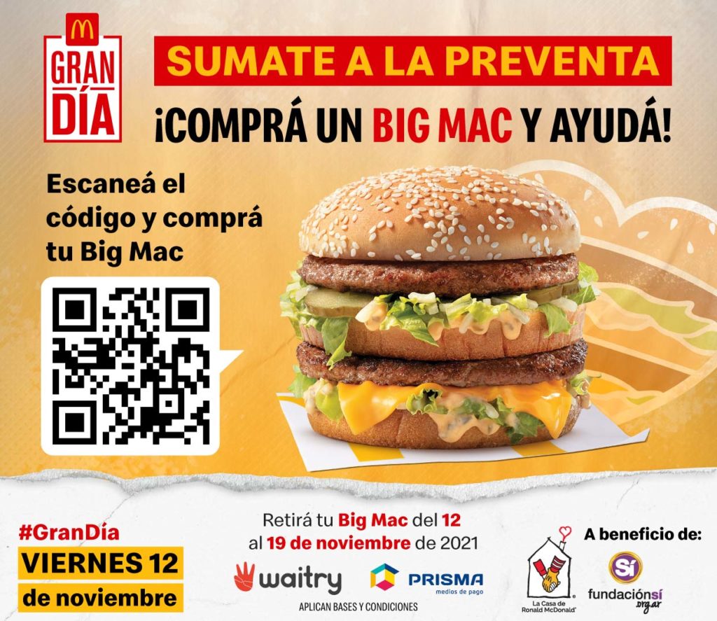 McDonald’s continúa con un firme compromiso solidario. Por ese motivo, el viernes 12 de noviembre se llevará a cabo una nueva edición del Gran Día, su jornada solidaria más importante del año donde el 100% de lo recaudado por la venta de su hamburguesa Big Mac es donado a Fundación Sí y la Casa Ronald.