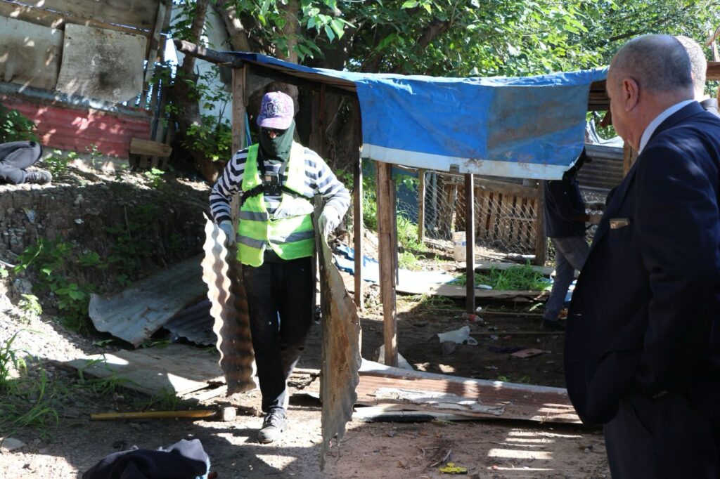 El secretario de Seguridad de Santa Fe, Omar Pereira, y la fiscal Agustina Eiris supervisaron este jueves el derribo de un puesto de venta de estupefacientes en Almafuerte y San Jerónimo, en Barrio Travesía, en la zona norte de la ciudad de Rosario.
