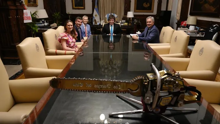 Como gesto simbólico del alineamiento ideológico, el Presidente y el viceprimer ministro posaron junto a los presentes con la motosierra, emblema del programa libertario de recorte del gasto público impulsado por el Gobierno nacional.