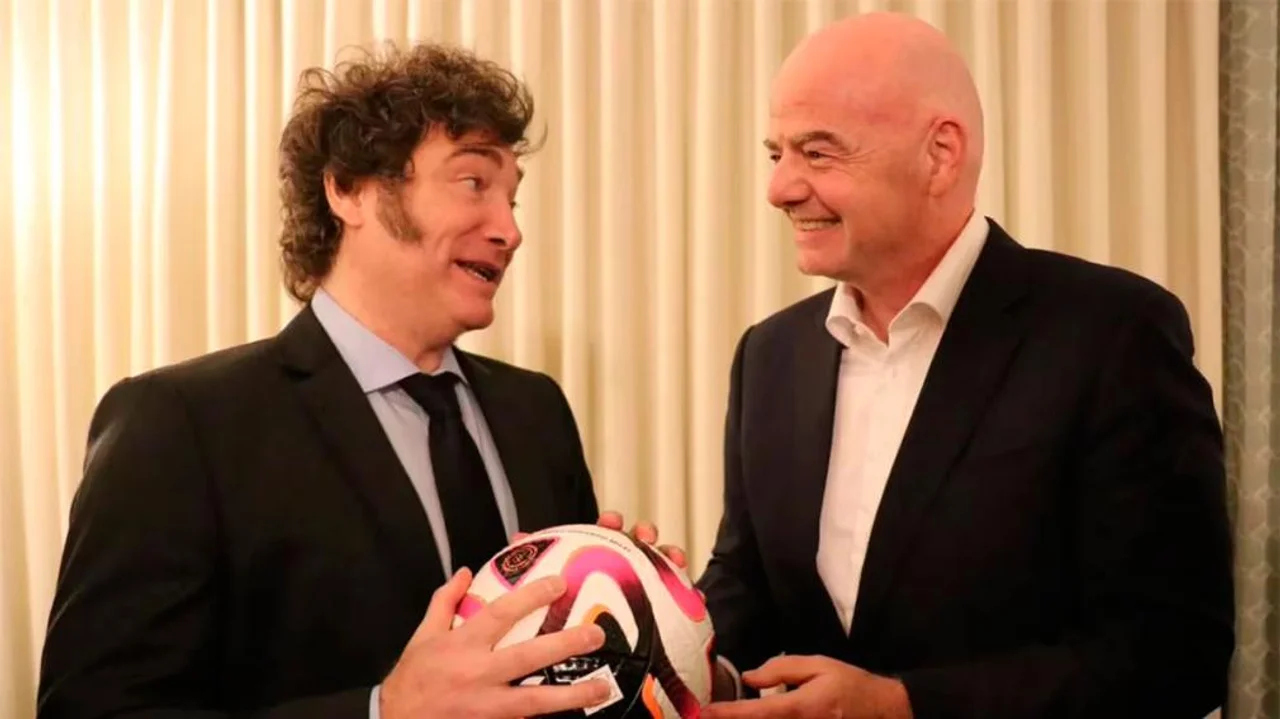 Tras el encuentro se difundieron fotos de ambos luciendo distendidos y sonrientes, en las que se observa que el mandamás del fútbol le regaló a Milei un banderín de la FIFA, una pelota y una camiseta con el apellido del presidente argentino en la espalda.