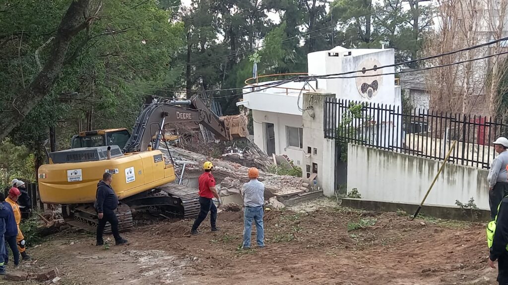 A media mañana, brigadistas pudieron derribar una pared que quedaba del inmueble con la ayuda de una retroexcavadora proporcionada por la Municipalidad. Era una estructura que estaba en un punto de equilibrio inestable, que suponía un riesgo para los propios rescatistas.