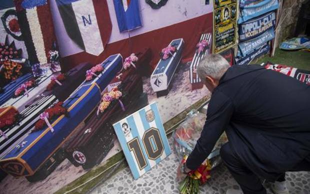 Ni bien el plantel completo de Roma se bajó del tren y se trasladaron hacia el hotel, tanto el director técnico como su ayudante y el preparador de arqueros del equipo cambiaron el destino. Ambos, escoltados por una gran cantidad de efectivos de seguridad, llevaron un ramo de flores para dejar bajo el mural de Diego.