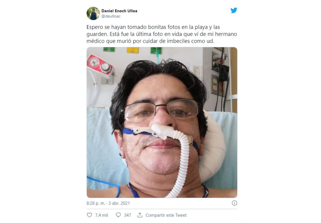 Si bien la muerte del doctor ocurrió hace ocho meses, recién ahora su hermano pudo descargar su enojo. Pablo Enrique Ulloa Cáceres era médico de primera línea de pacientes con Coronavirus, y murió por esta enfermedad luego de contagiarse trabajando. Su hermano, molesto por la falta de cuidados y el turismo de Semana Santa, explotó en las redes sociales. El hecho ocurrió en Honduras.