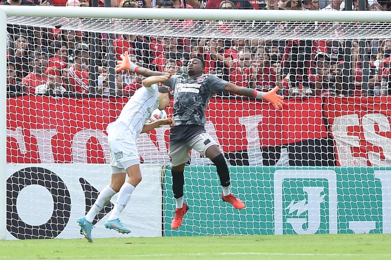 Minutos después, Mauricio Arboleda tuvo una excelente aparición y salvó a su equipo al quedarse con un mano a mano frente a Cruz que parecía ser cosa juzgada. El delantero visitante apareció solo por una desatención defensiva y la Araña tuvo que poner en riesgo su cuerpo para evitar la caída de la Lepra.