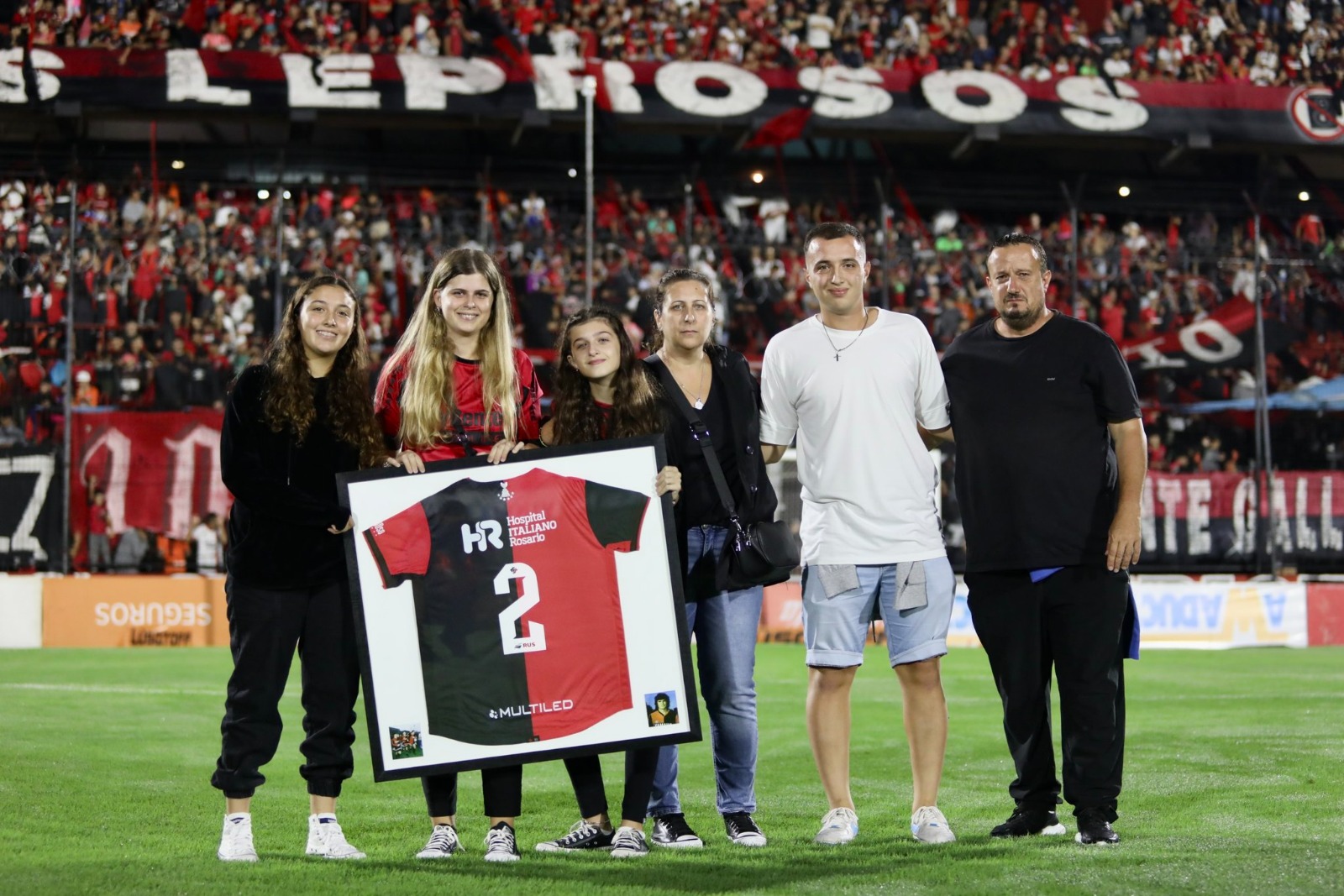 El cuadro con la camiseta número 2 con que el Club Atlético Newell’s Old Boys recordó a su histórico defensor fue recibida por los familiares de Raggio.