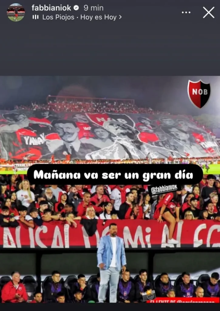 En la antesala de un duelo que promete, el entrenador de Newell’s, Christian Fabbiani, se anticipó al partido ante Boca por el Torneo Apertura y, durante la noche del sábado, calentó la previa con una foto suya, la hinchada de la Lepra detrás y un mensaje especial: “Mañana va a ser un gran día“.